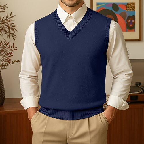 Herren Pullunder Kleid Pullover Weste Strickware Strickjacke Weste Gerippt Stricken Normale Oberteile Tasche Knöpfe Einfach V Ausschnitt Mode Klassisch Urlaub Alltagskleidung Bekleidung Herbst Winter
