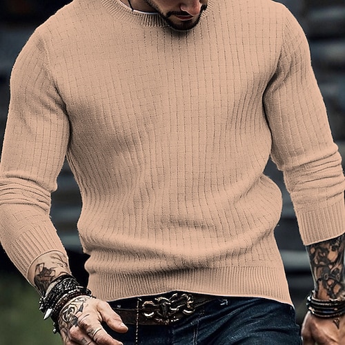 Herren Pullover Strickpullover Gerippt Stricken Normale Oberteile Gestrickt Einfach Rundhalsausschnitt Mode Basic Urlaub Alltagskleidung Bekleidung Herbst Winter Wein Schwarz S M L