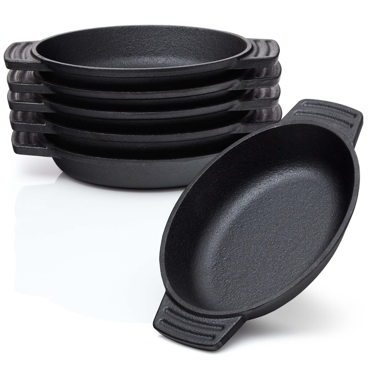 BBQ-Nerd® Servierpfännchen aus Gusseisen im 6er Set ? Grillpfännchen - oval 22,5x13 cm - zum Braten Überbacken Grillen Anrichten Servieren