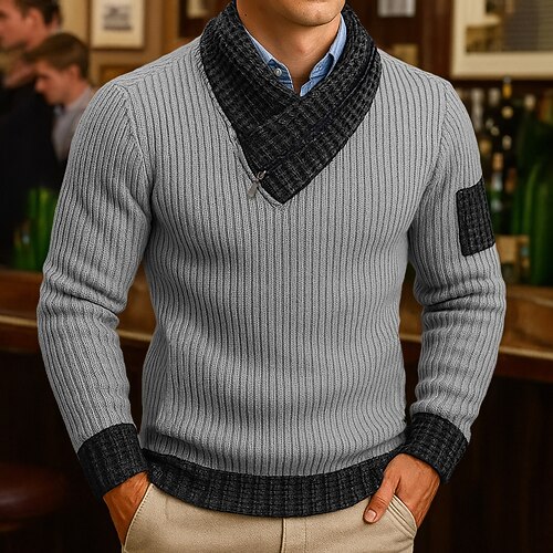Herren Pullover Gerippt Stricken Normale Oberteile Gestrickt Schmale Passform Einfach Schal Strickware Zeitgenössisch Lässig Alltagskleidung Bekleidung Herbst Schwarz Rote S M L