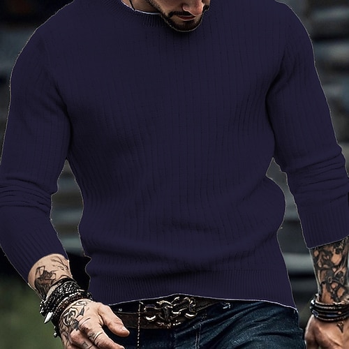 Herren Pullover Strickpullover Gerippt Stricken Normale Oberteile Gestrickt Einfach Rundhalsausschnitt Mode Basic Urlaub Alltagskleidung Bekleidung Herbst Winter Wein Schwarz S M L