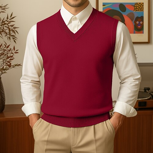 Herren Pullover Pullunder Gerippt Stricken Normale Oberteile Gestrickt Schmale Passform Einfach V Ausschnitt Strickware Zeitgenössisch Lässig Alltagskleidung Bekleidung Herbst Kamel Schwarz S M L