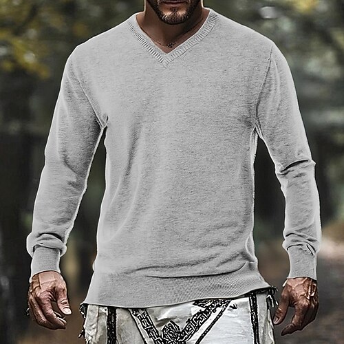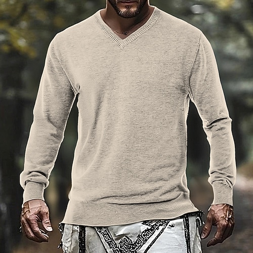 Herren Pullover Strickpullover Gerippt Stricken Normale Oberteile Gestrickt Einfach V Ausschnitt Mode Basic Urlaub Alltagskleidung Bekleidung Herbst Winter Kamel Schwarz S M L