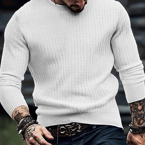Herren Pullover Strickpullover Gerippt Stricken Normale Oberteile Gestrickt Einfach Rundhalsausschnitt Mode Basic Urlaub Alltagskleidung Bekleidung Herbst Winter Wein Schwarz S M L