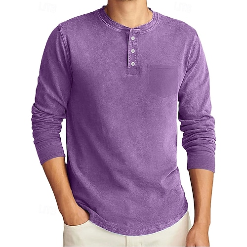 Herren Henley Hemd T-Shirt Langarmshirt Langarm Henley Herbst Winter Retro Mode Designer Nostalgisch Stückgefärbt Verblasst Mode Urlaub Straße Ausgehen Marineblau Schwarz Himmelblau Top T-Shirt für