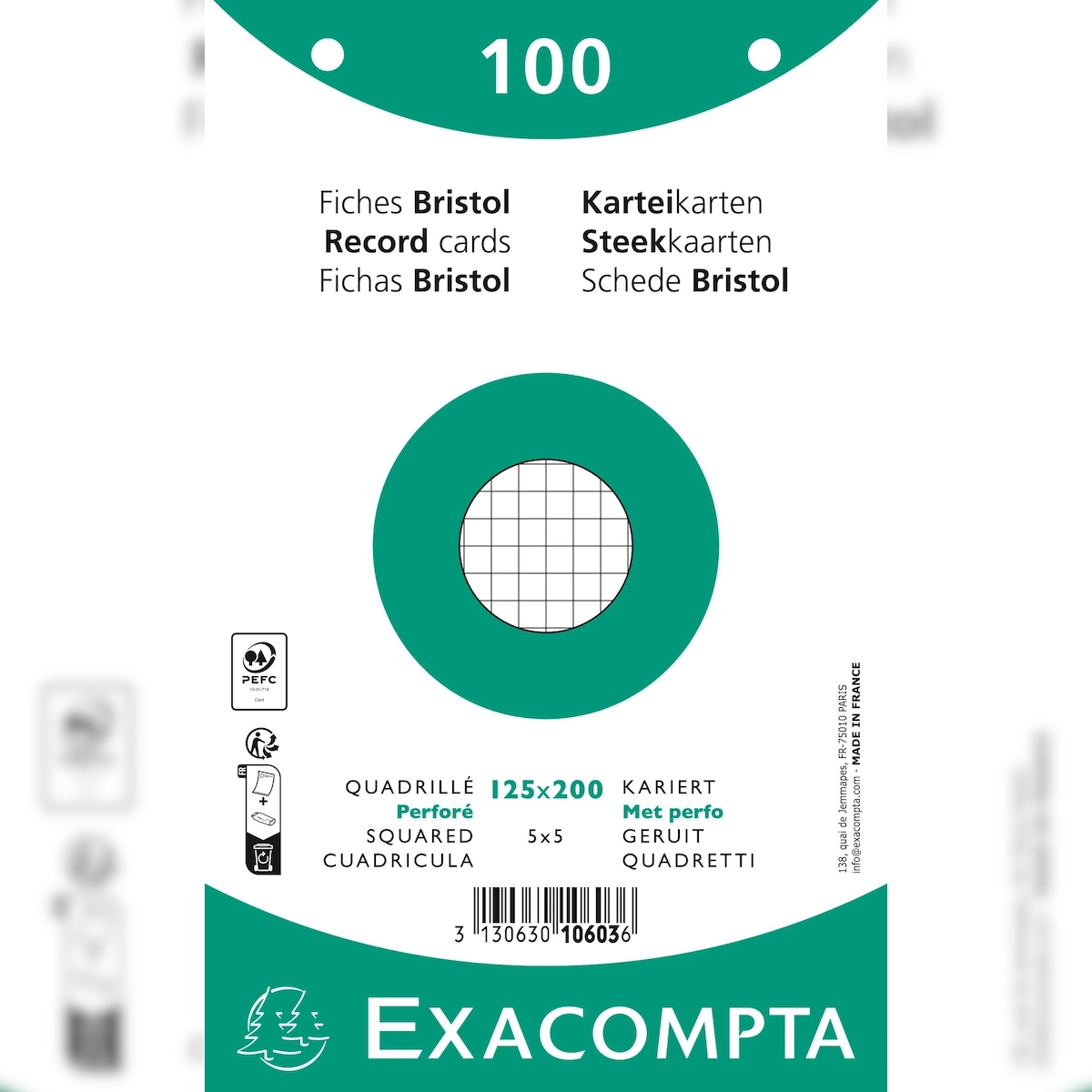 Exacompta 10603E 12x Karteikarten 125x200 kar perf ws 100St - Weiß