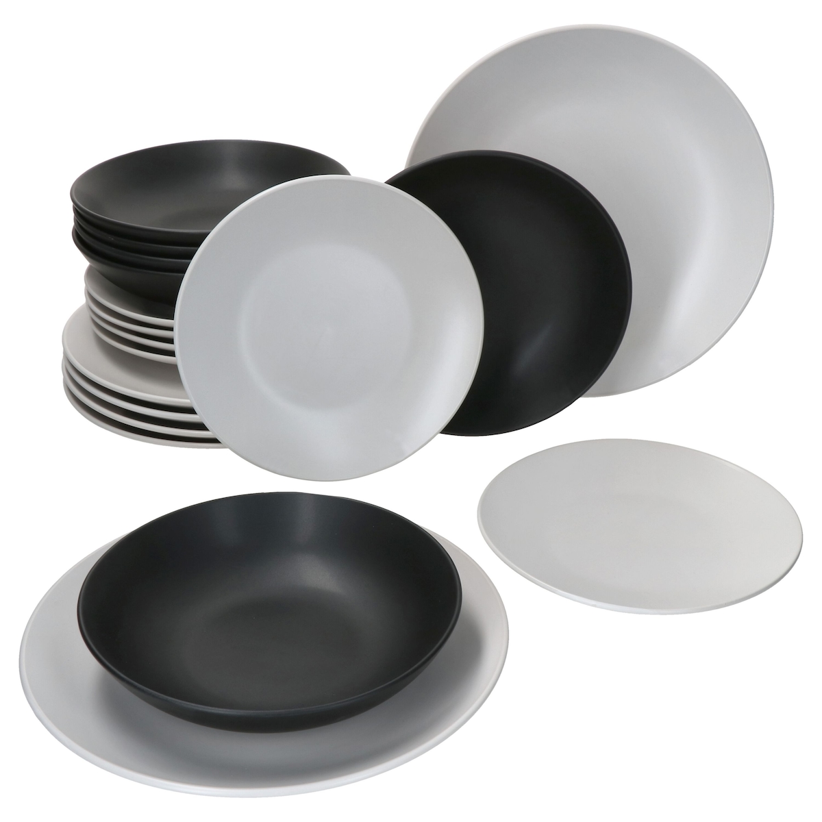 18tlg Teller Set Nero Bianco - Speiseteller weiß, Suppenteller schwarz & Desserteller weiß