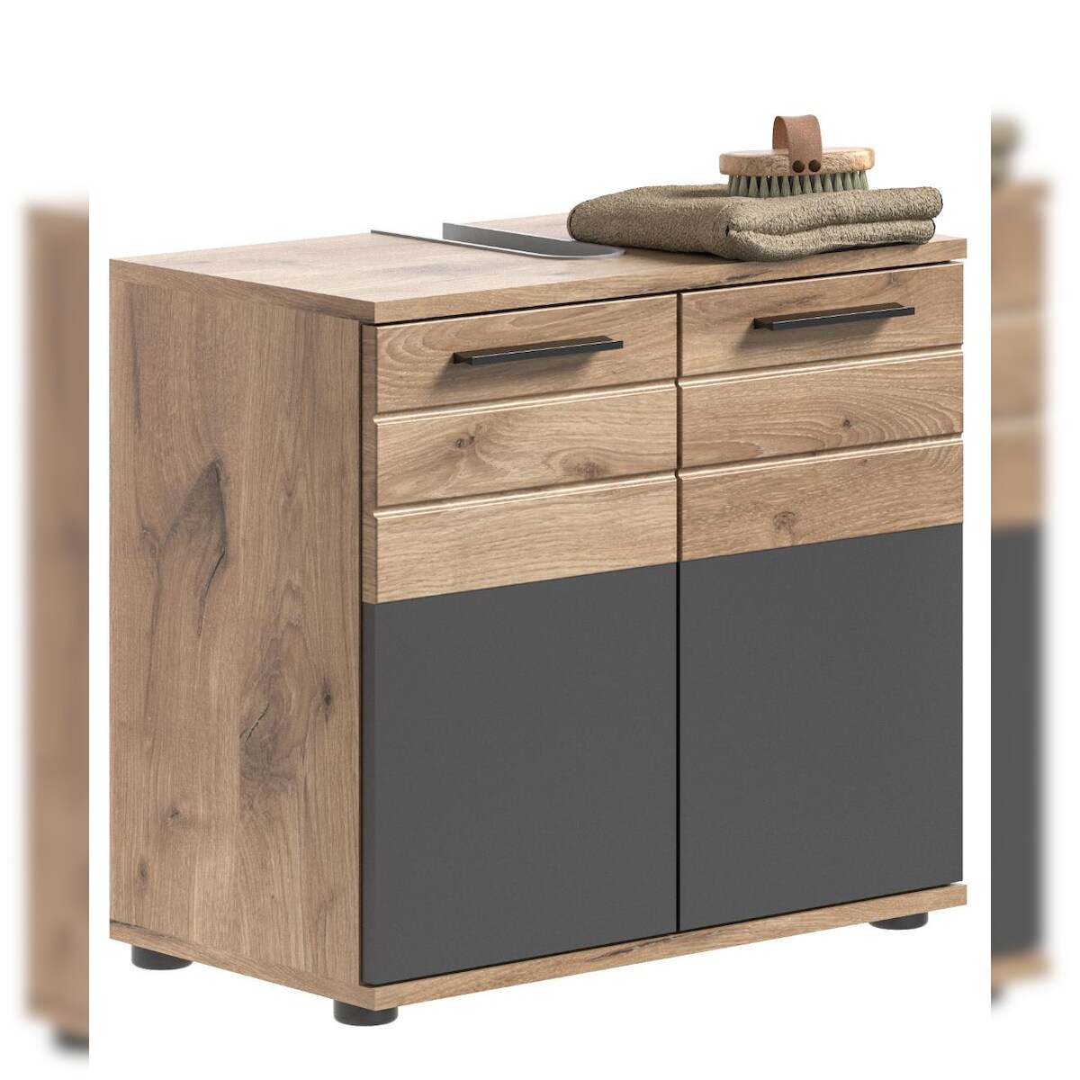 Ebuy24 Mason Waschbeckenunterschrank Einzeltyp 2 Türen Grau, Eiche Dekor.
