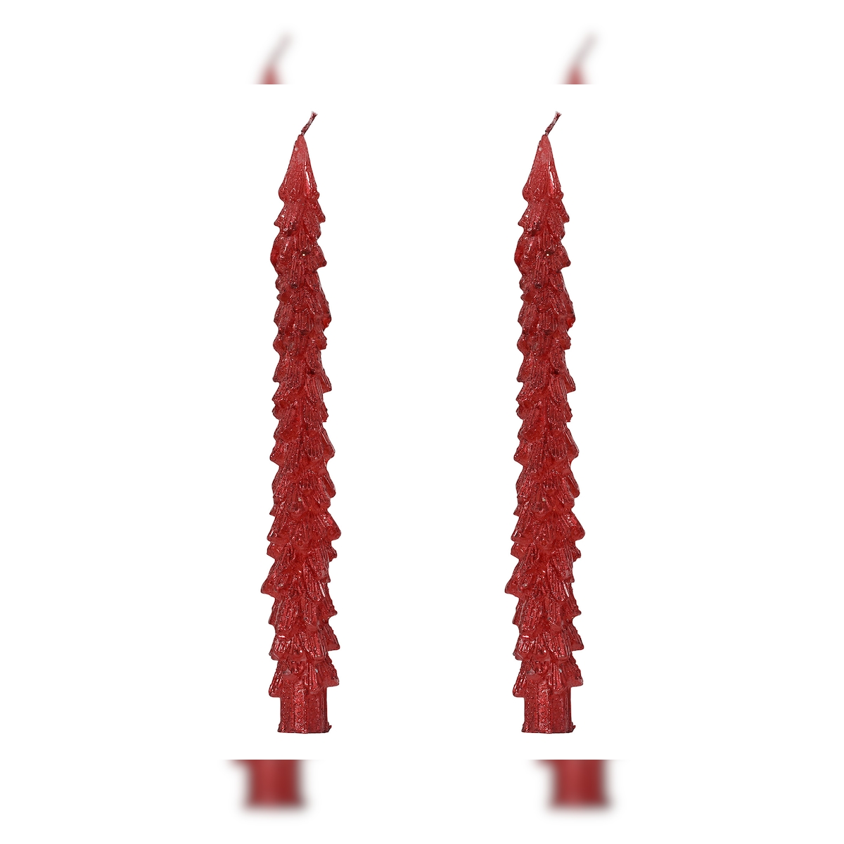 Christmas Decorations 2 Spitzkerzen Paraffin 25cm - Kerzen in Tannenbaum Form Weihnachtskerzen Adventskerzen Stabkerzen Tafelkerzen Tischkerzen Dekokerzen Kerzenfigur Rot