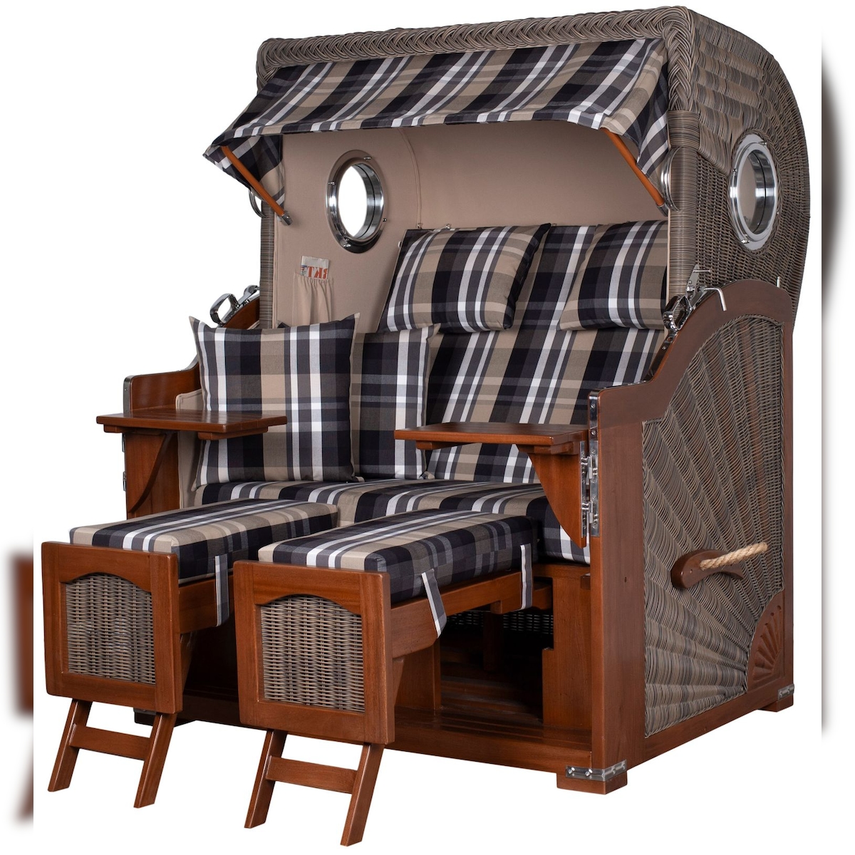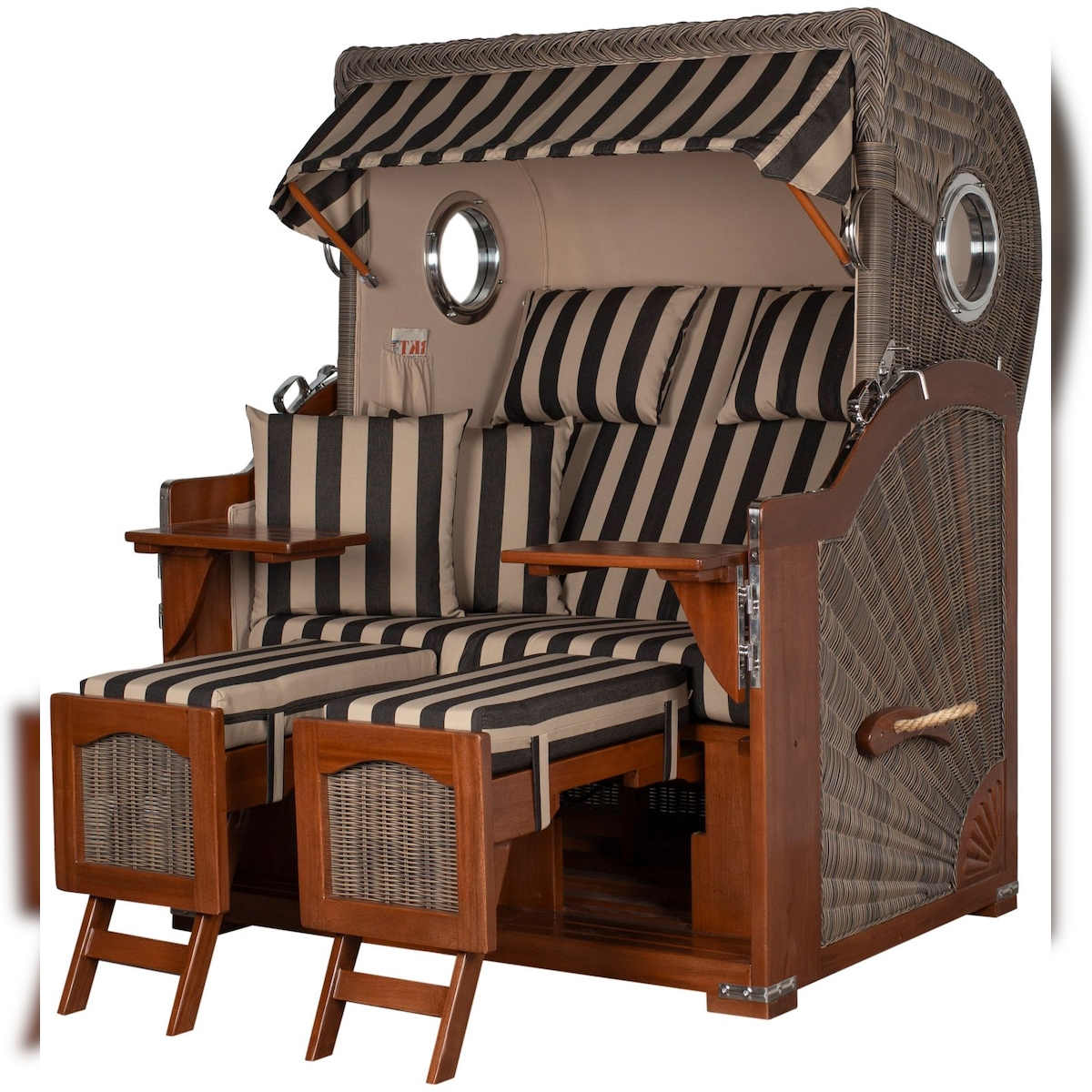 Mr. Deko Strandkorb Komplettset - bene living - Ammersee Mahagoni Bullauge - PE grau - Modell 581 - inkl. Liftersystem