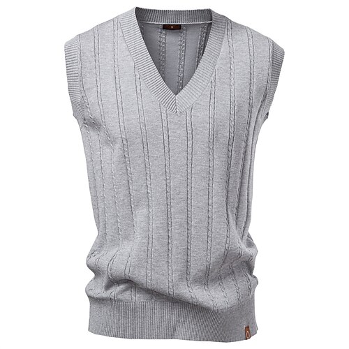 Herren Pullunder Zopfmuster Stricken Normale Oberteile Einfarbig V Ausschnitt Elegant Vintage Schule Formell Bekleidung Ärmellos Frühling Herbst Schwarz Dunkelmarine S M L