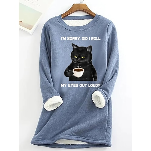 Damen Pullover Sweatshirt Druck Tiermotiv Buchstabe Lässig Komfort Langarm Rundhalsausschnitt Rundhals Normale Oberteile Lässig Straße Alltagskleidung Blau Rosa Rote Grau Herbst Winter