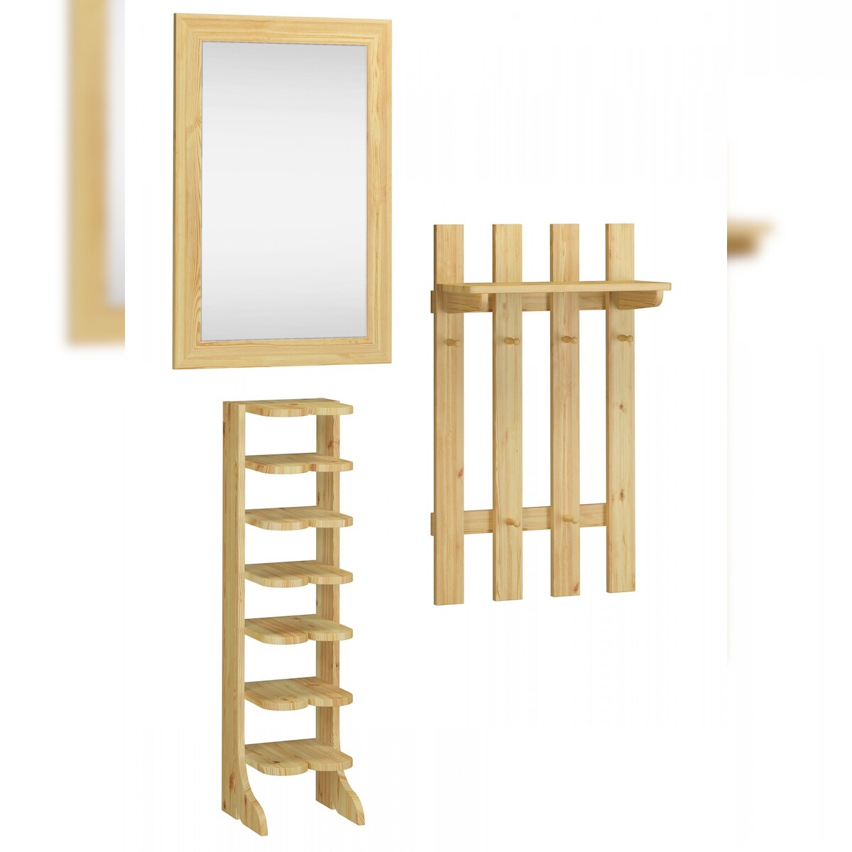Erst-Holz Garderobenset Schuhregal Wandspiegel Hängegarderobe Flurmöbel Massivholz Kiefer 90.80-11-Set