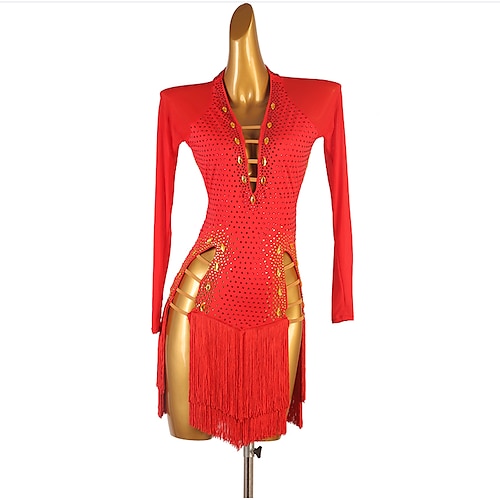 Lateinamerikanischer Tanz Kleid Quaste Kristalle / Strasssteine Damen Leistung Langarm Chinlon Netzstoff