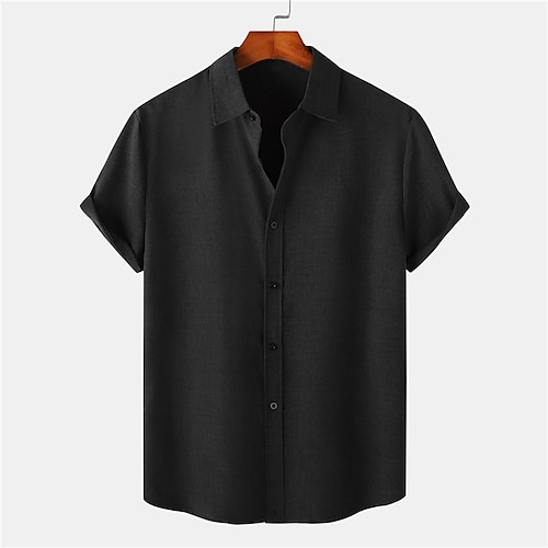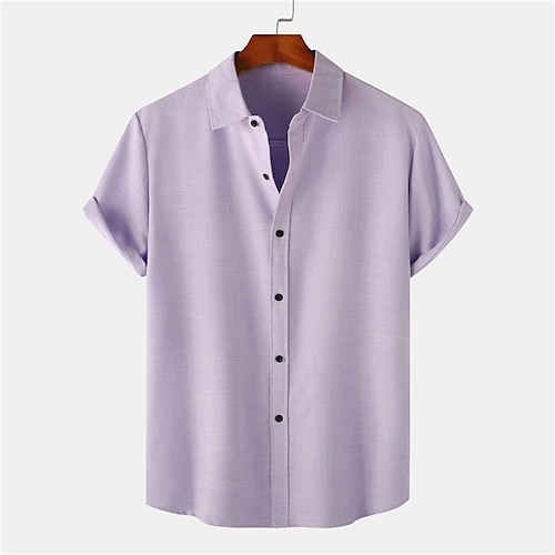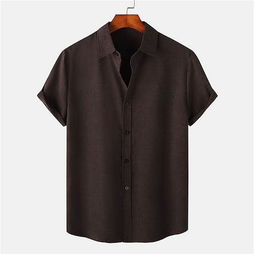 Herren Hemd leinenhemd Baumwoll-Leinenhemd Sommerhemd Freizeithemd Strandhemd Einfach Urlaub Lässig Schwarz Rosa Dunkelgrün Violett Kurzarm Revers Sommer Bekleidung