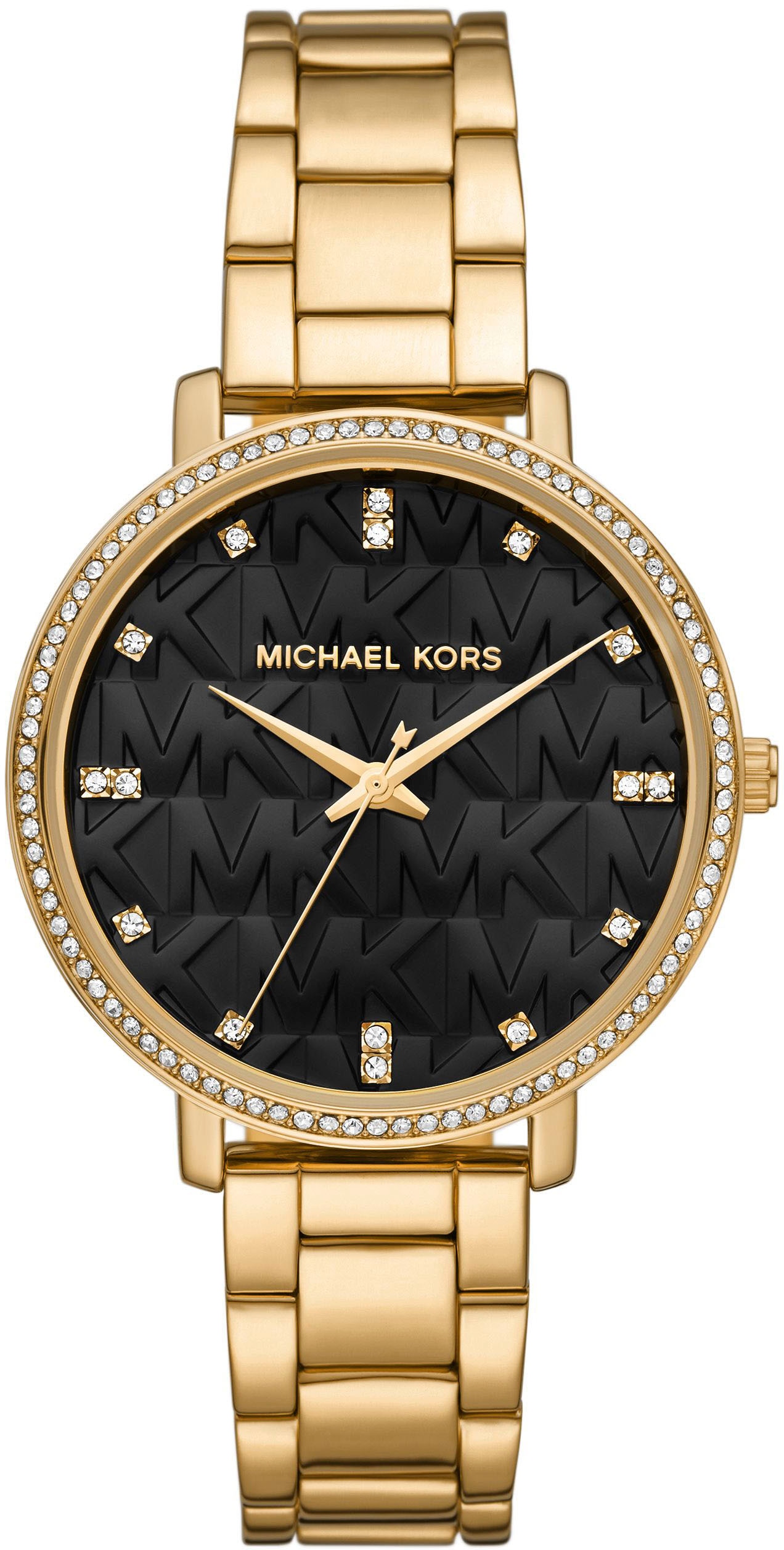Quarzuhr MICHAEL KORS "PYPER", gelbgoldfarben, schwarz, Armbanduhren, Damen, Armbanduhr, Damenuhr, Edelstahlarmband, analog, Glassteine