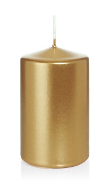Wiedemann Kerzen Gold Stumpenkerzen lackiert in Cello 100 x 60 mm, 16 Stück