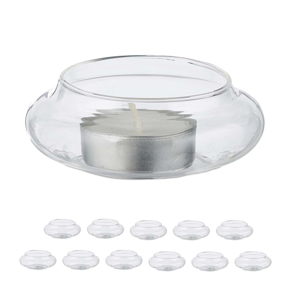 Relaxdays Teelichthalter schwimmend, 12er Set, Glas, Tischdeko Hochzeit, Pool & Teich, Schwimmteelichter, transparent