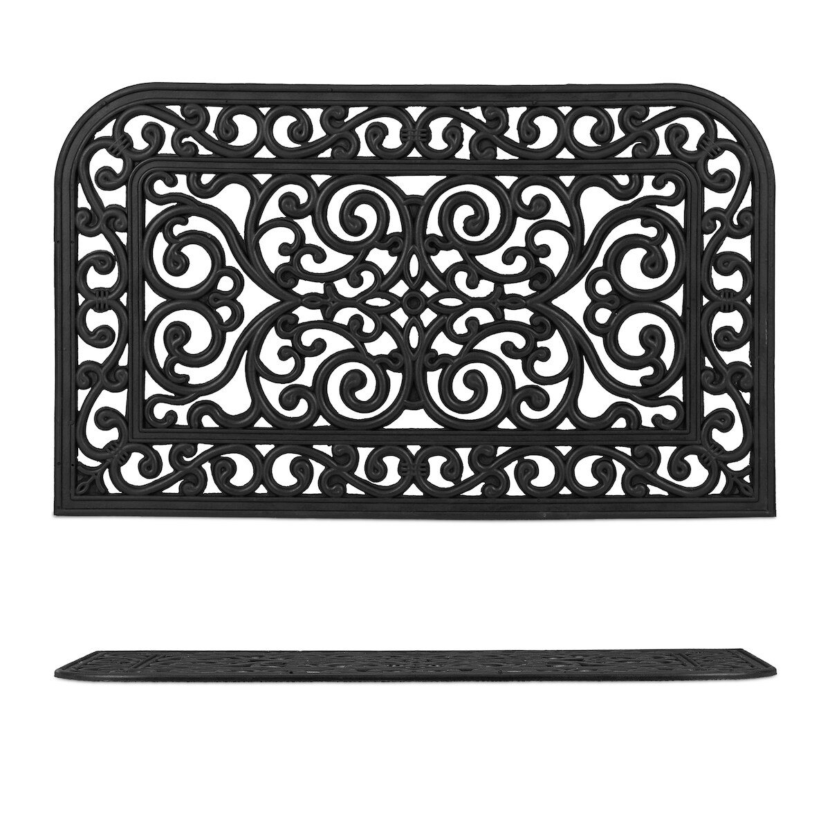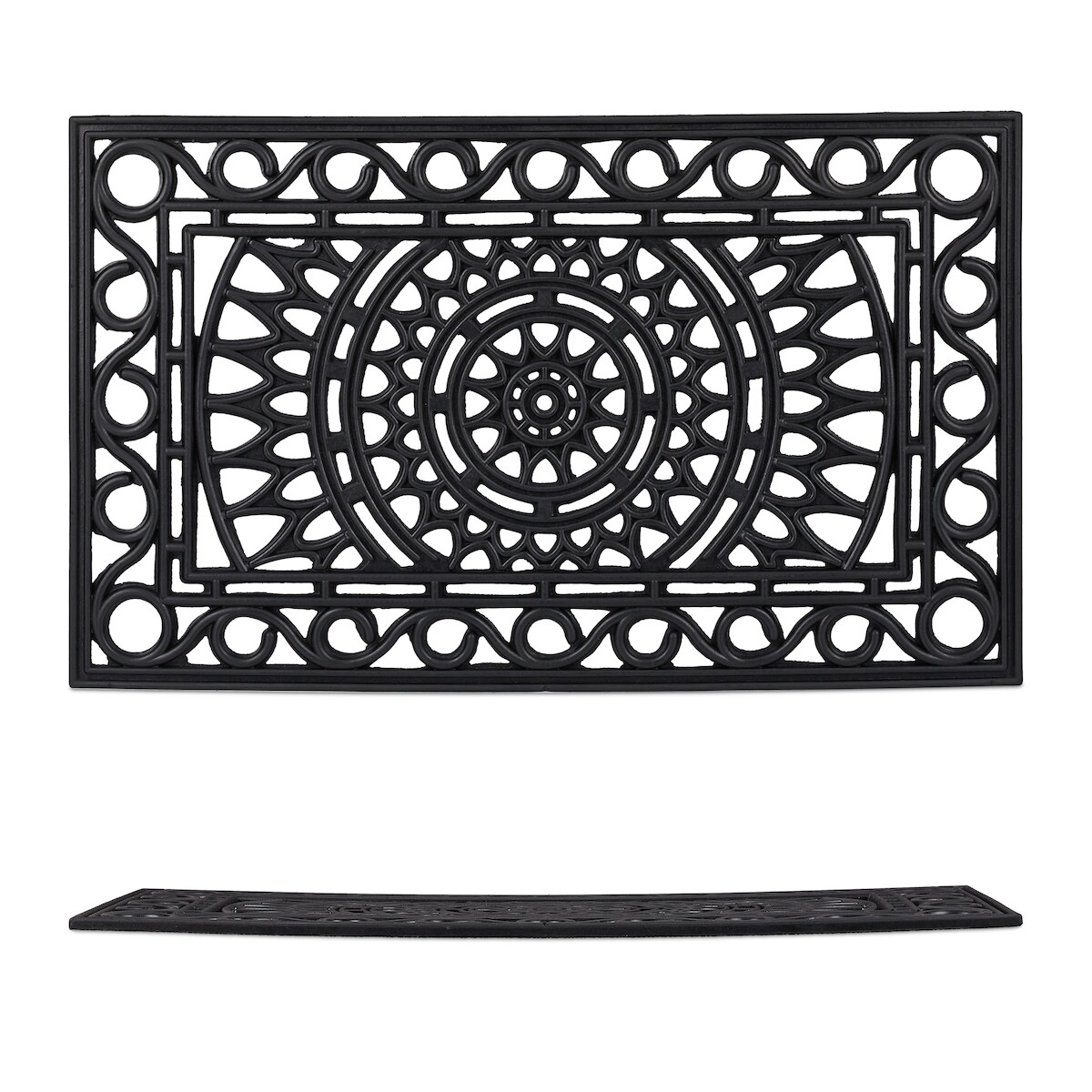 Relaxdays Fußmatte Gummi, 45 x 75 cm, rutschfest, wetterfest, Fußabtreter Ornamente, Indoor & Outdoor, Türmatte, schwarz