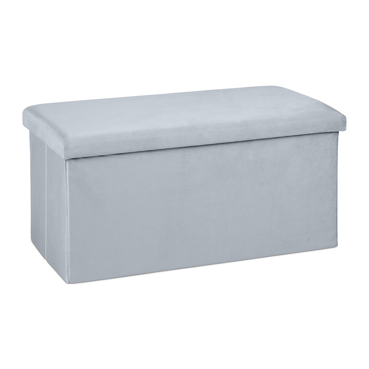 Relaxdays Sitzbank mit Stauraum, Samt, 80 L, Flur, Wohnzimmer, gepolstert, faltbar, Truhenbank, 38x77x39 cm, hellgrau