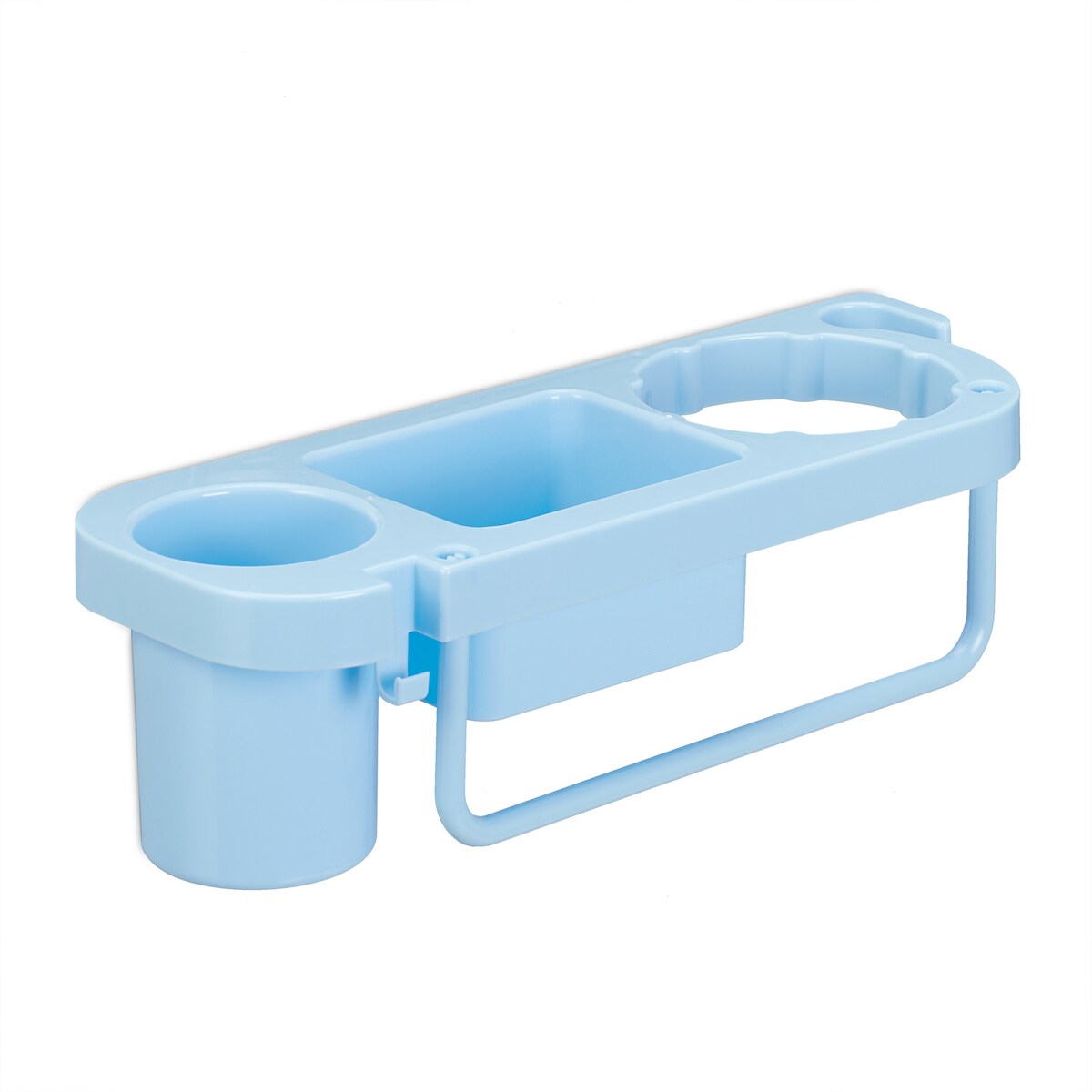 Relaxdays Föhn Halterung ohne Bohren, Kunststoff, mit Kabelhalter & Ablagen, Föhnhalter Wand, HBT 9x30x10,5 cm, hellblau