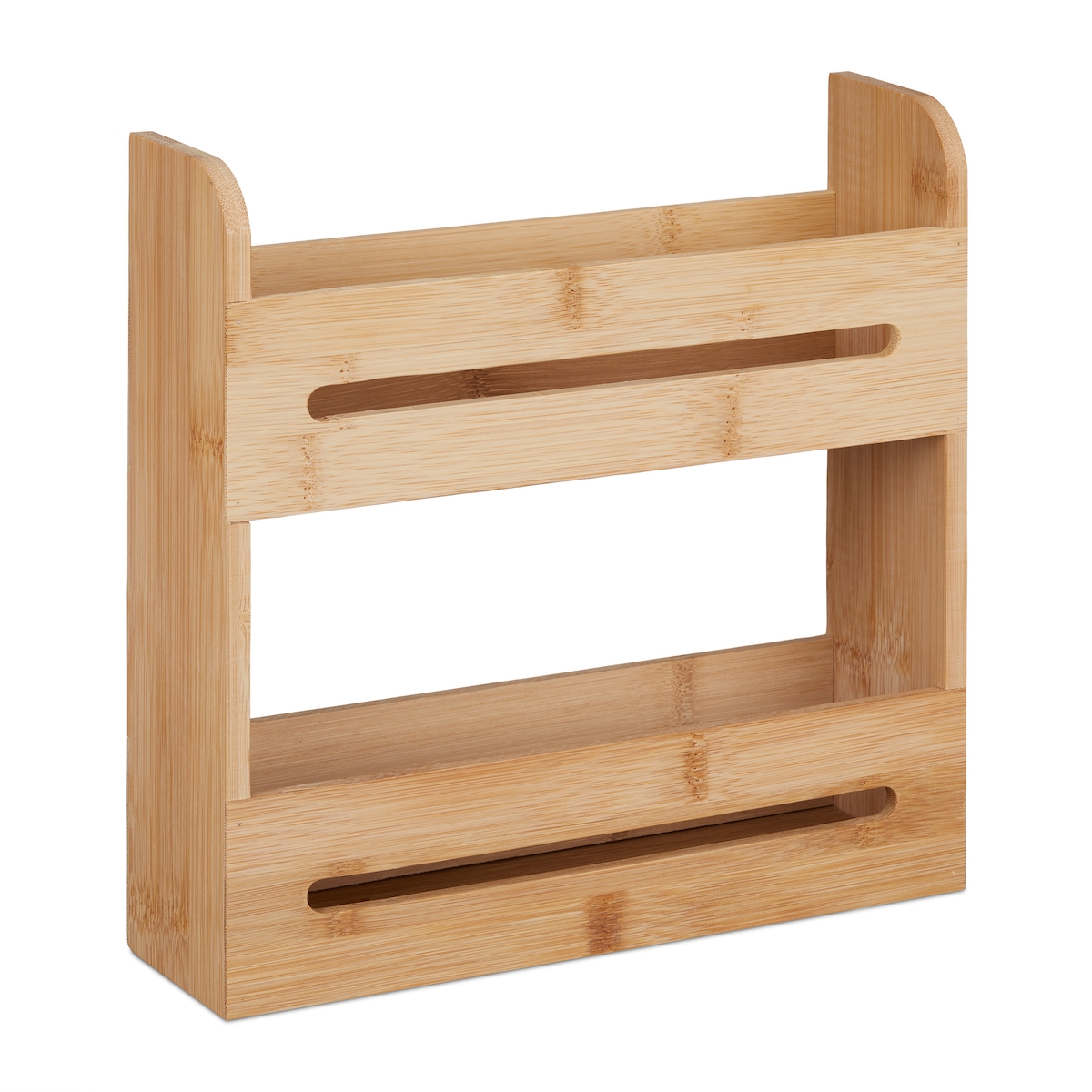 Relaxdays Gewürzregal Bambus, Gewürzständer 2 Etagen, HBT: 25 x 25 x 7 cm, für Arbeitsplatte, Küchenregal stehend, natur