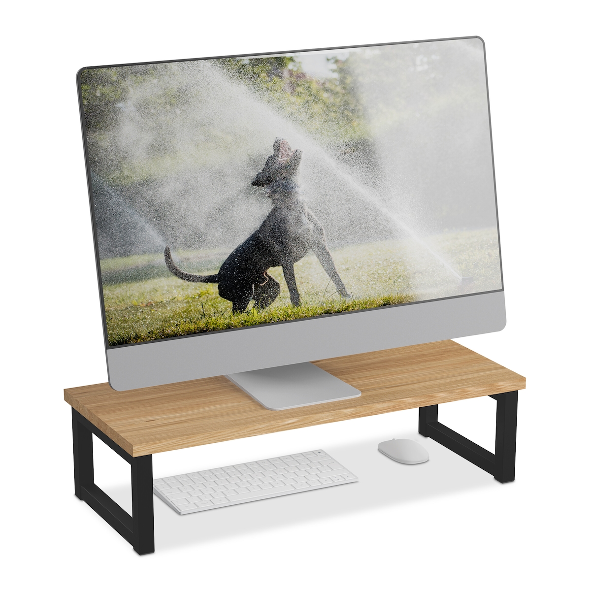 Relaxdays Monitorständer, Bildschirmerhöhung für Schreibtisch, HxBxT: 15 x 55 x 23 cm, Industrial Design, natur/schwarz