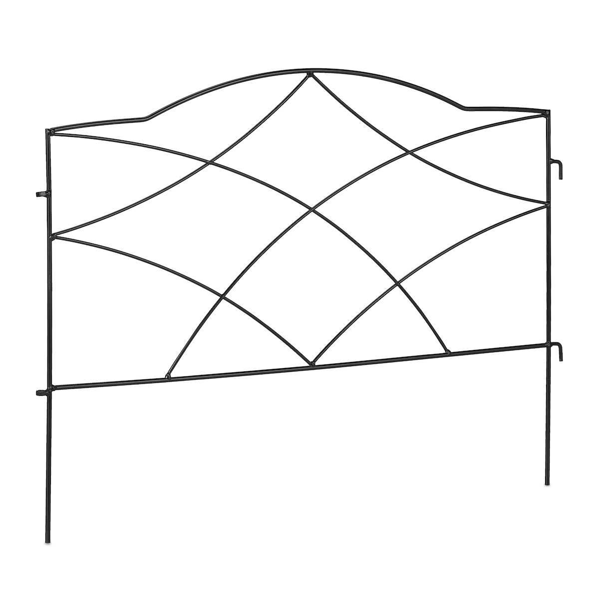 Relaxdays Beetzaun Metall, 6 Zaunelemente je HxB 46 x 61 cm, Garten Beeteinfassung zum Stecken, Zierzaun, Eisen, schwarz