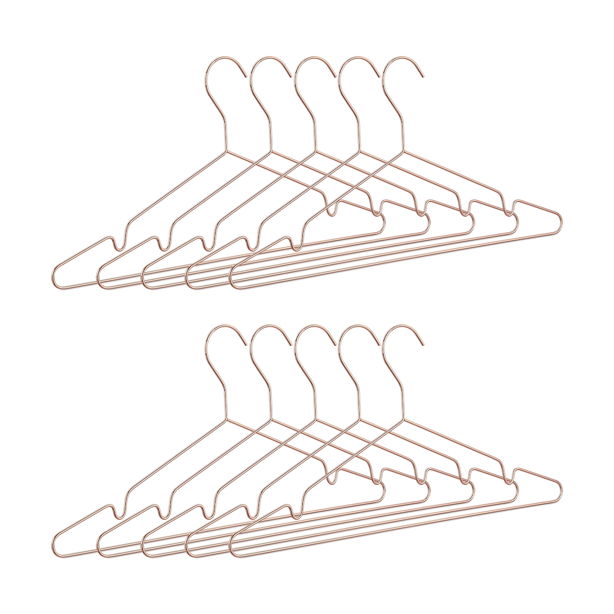 Relaxdays Kleiderbügel roségold im 10er Set, dünn, elegante Drahtbügel für Tops, glänzende Bügel, platzsparend, kupfer