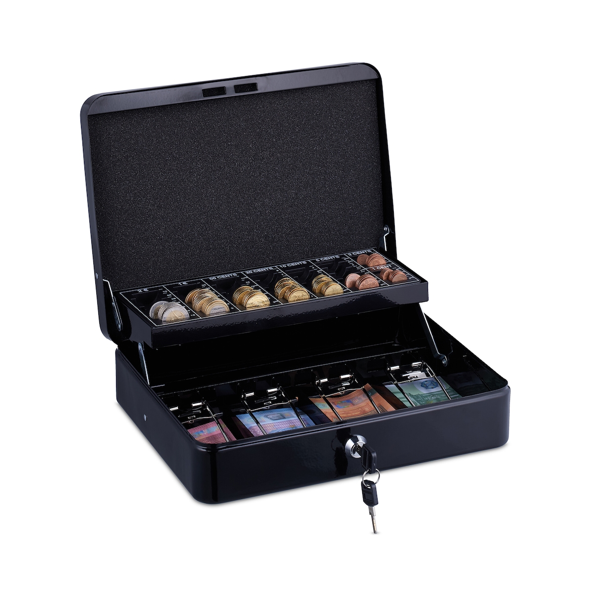 Relaxdays Geldkassette, abschließbar, Eisen, Münzzählbrett & 4 Scheinfächer, HBT: 8,5 x 30,5 x 24,5 cm, Kassa, schwarz