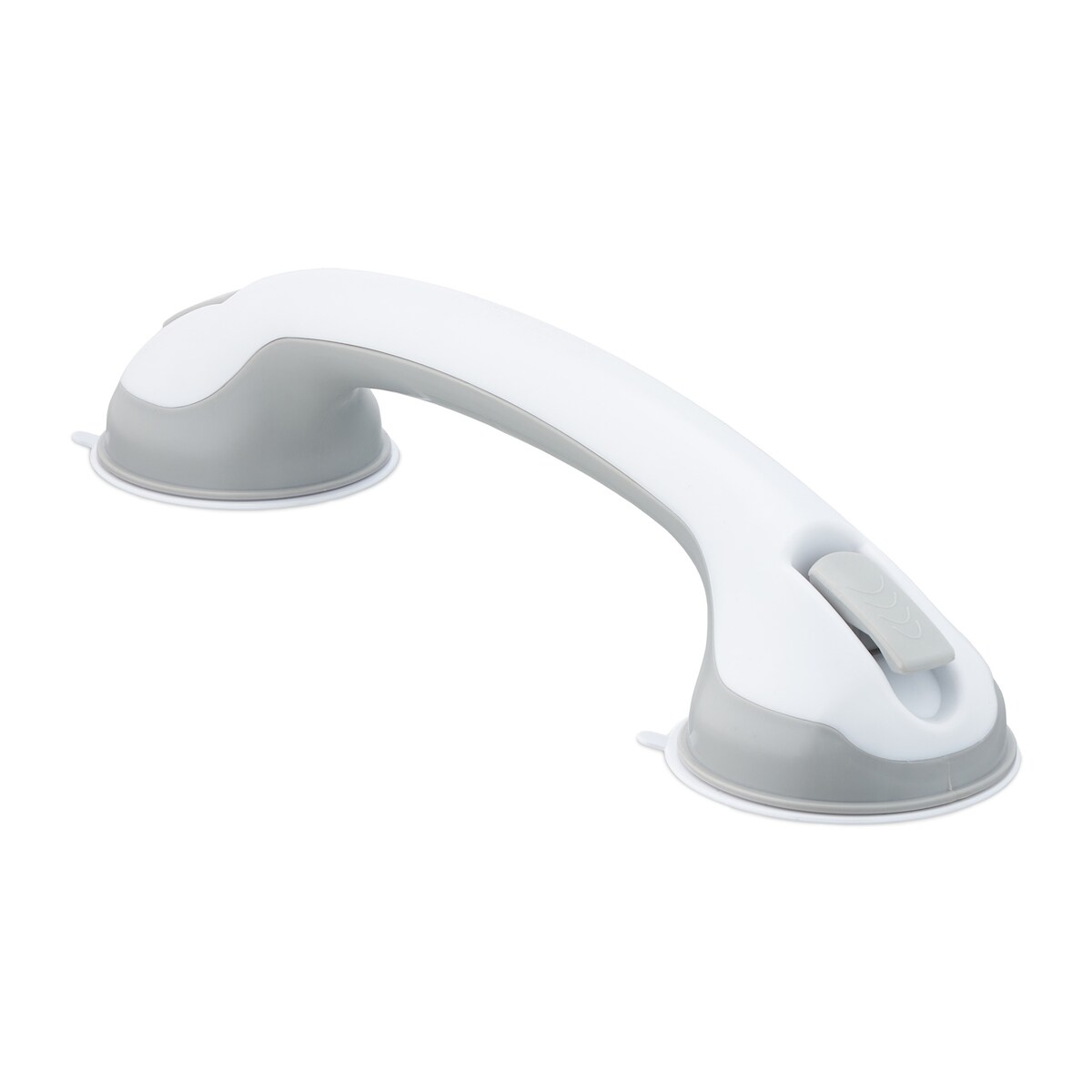 Relaxdays Haltegriff mit Saugnapf, Dusche & Badewanne, 70 kg, Senioren & behinderte Menschen, Saugheber, weiß-grau