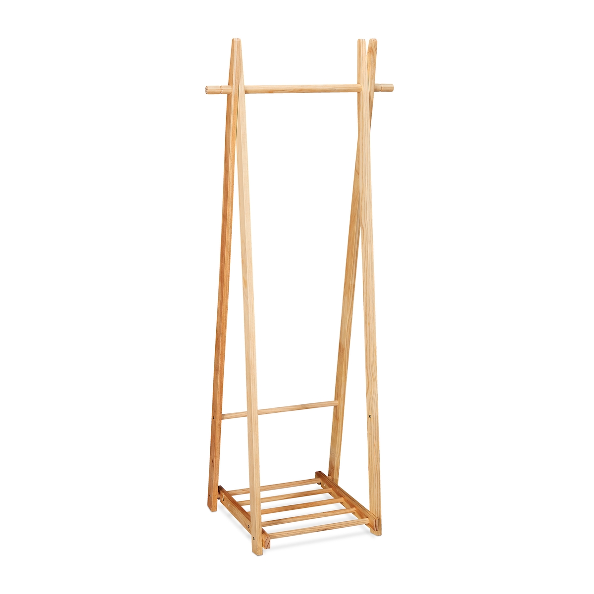 Relaxdays Kleiderständer mit Schuhablage, Kleiderstange, freistehend, Kleiderablage, HBT: 153x62x45 cm, Holz, natur