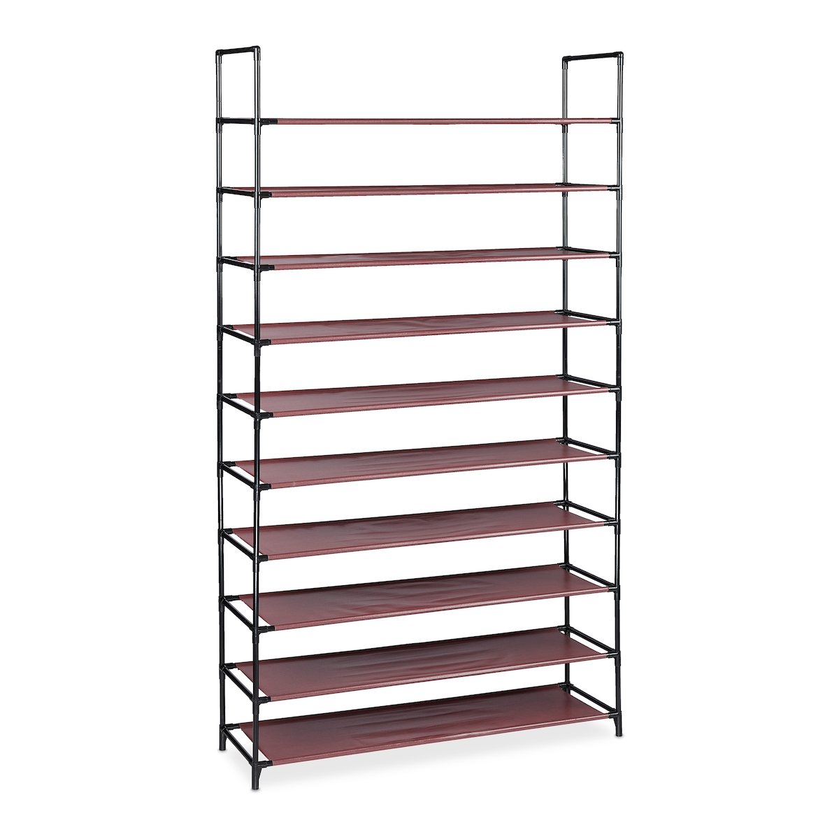 Relaxdays XXL Schuhregal Stecksystem, 10 Ebenen, für 50 Paar Schuhe, Stoff Schuhständer HBT 176,5x99x29,5 cm, bordeaux