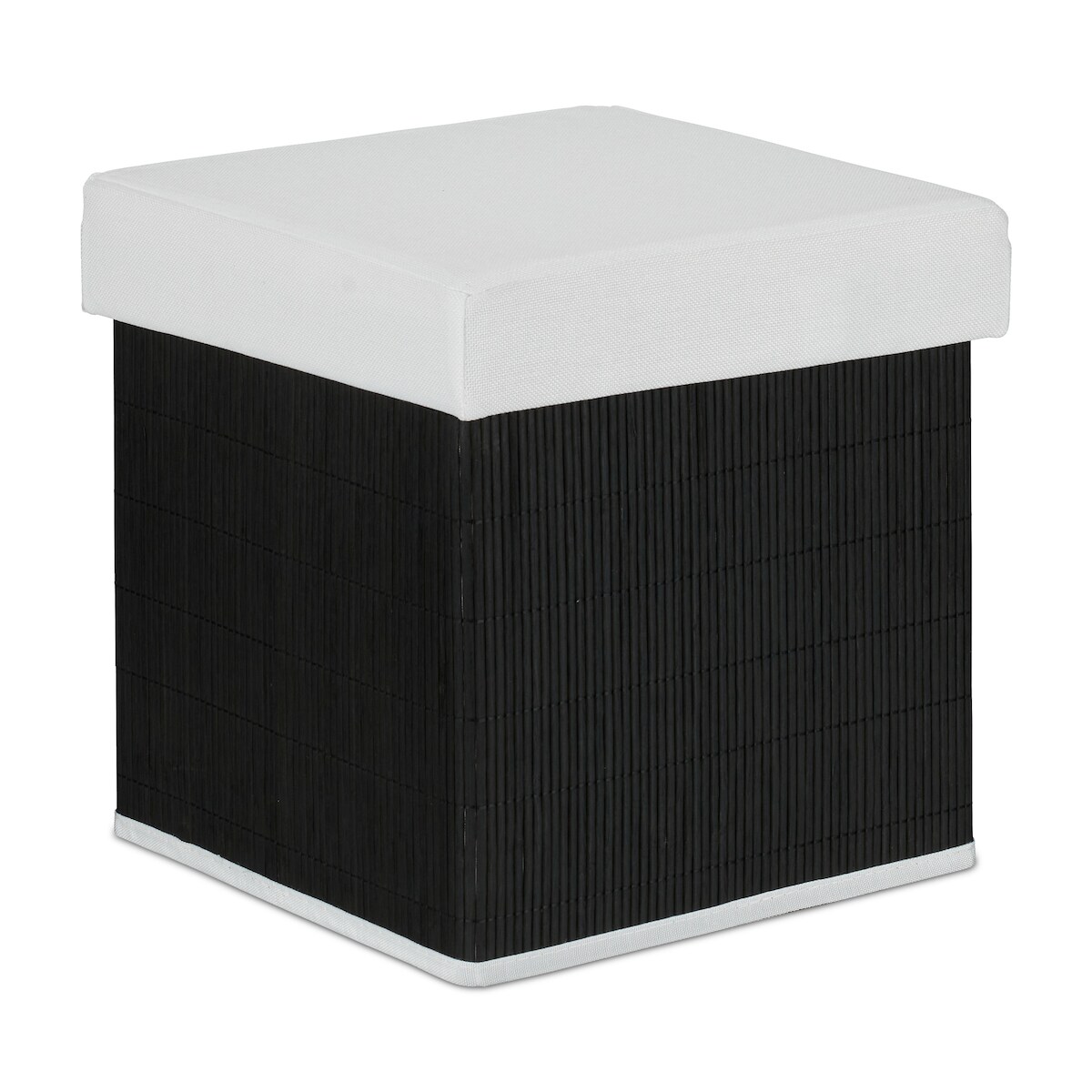 Relaxdays Sitzhocker mit Stauraum, gepolstert, klappbar, HBT: 35x35x35 cm, mit Deckel, Bambus Sitzwürfel, schwarz/weiß