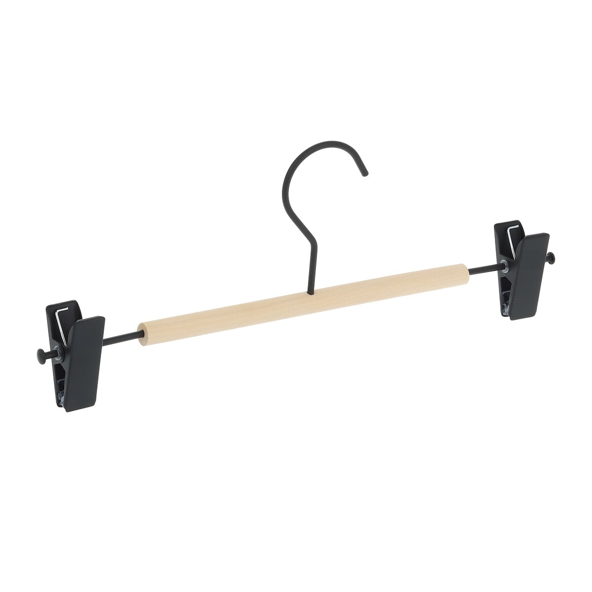Relaxdays Hosenbügel 10er Set, verstellbare Clips, Spannbügel für Röcke & Hosen, HBT: 11,5 x 30,5 x 3cm, schwarz/natur