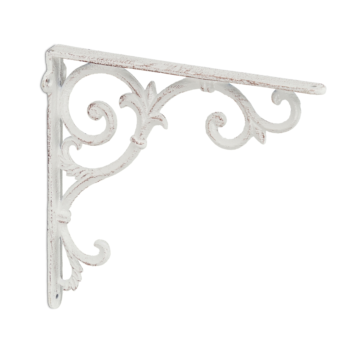Relaxdays Regalwinkel antik, 2er Set Gr. M, Regalträger Gusseisen, Barocke Ornamente, Winkel für Regale, Vintage, weiß