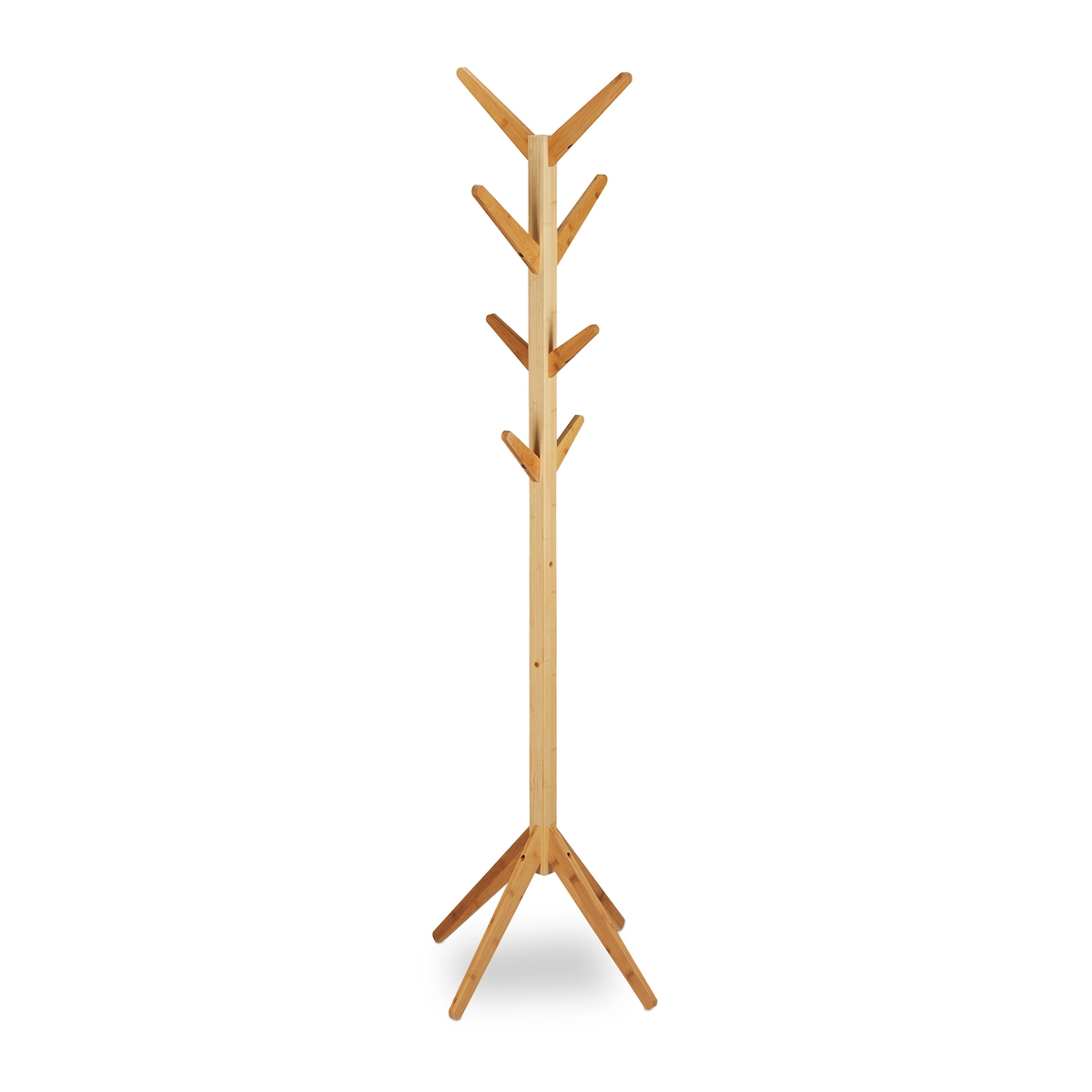 Relaxdays Garderobenständer Bambus, Kleiderständer mit 8 Haken, modernes Tree Design, HxBxT: 179 x 40,5 x 40,5 cm, natur