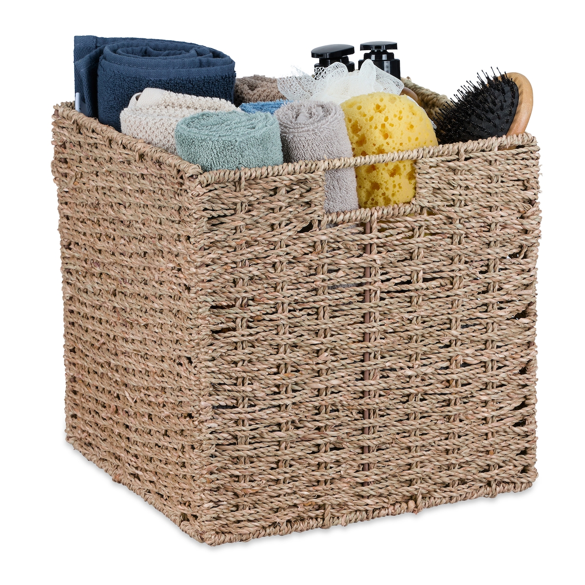 Relaxdays Aufbewahrungskorb Seegras, geflochtener Regalkorb, Ordnungskorb, Bad, HBT: 30 x 30 x 30 cm, Flechtkorb, natur