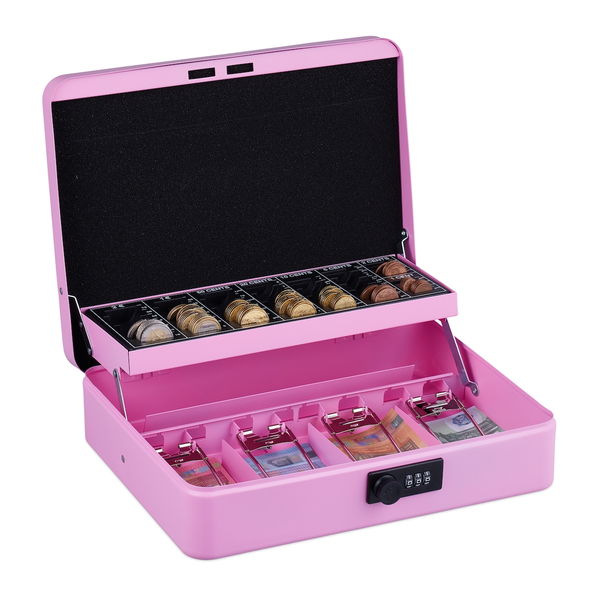 Relaxdays Geldkassette, 3-stellige Zahlenkombination, Münzeinsatz, Geldkasten Eisen, H x B x T: 8,5 x 30,5 x 25 cm, rosa