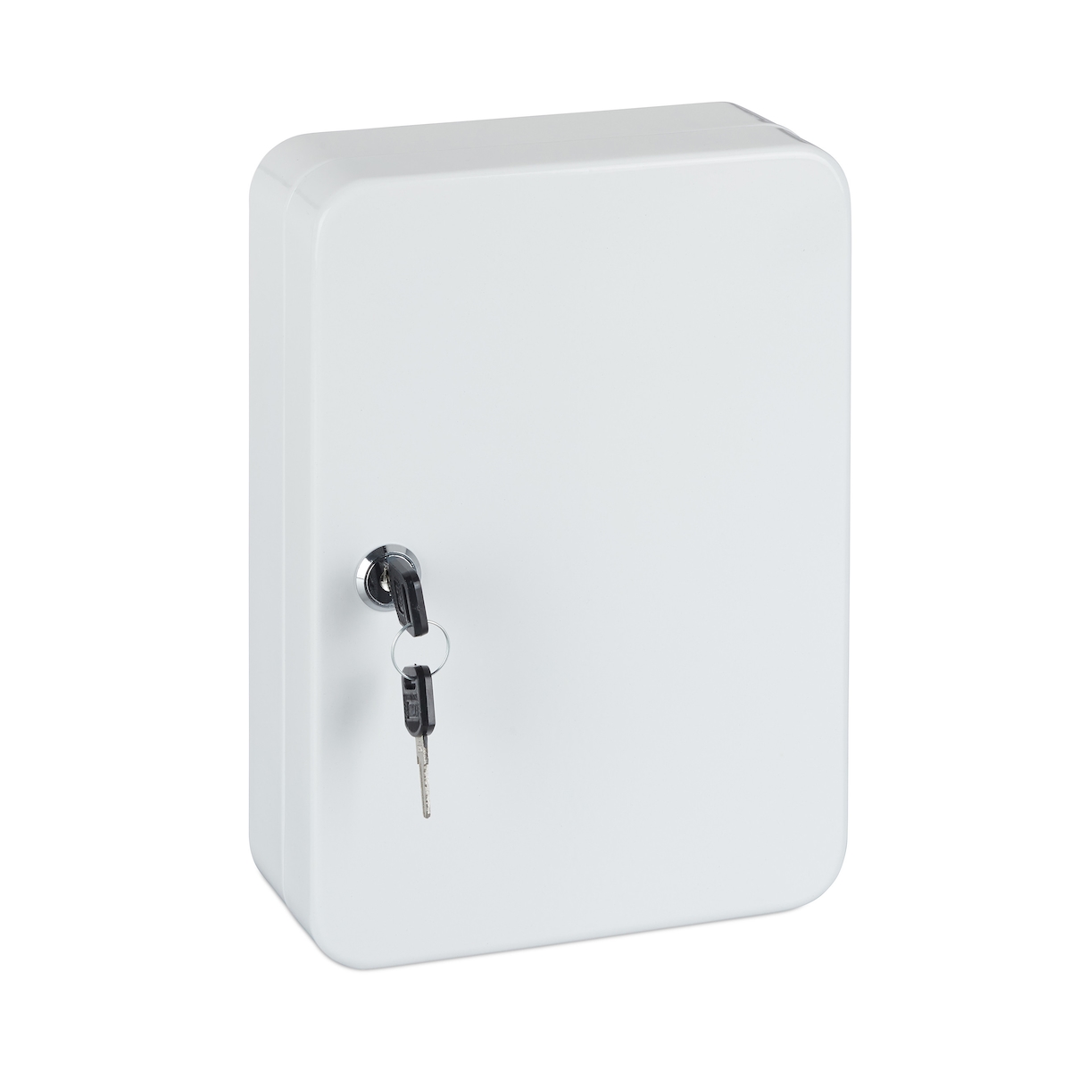 Relaxdays Schlüsselkasten Metall, abschließbar, 48 Haken, Schlüsselschrank inkl. Schlüsselanhänger, 25x18x7,5cm, weiß