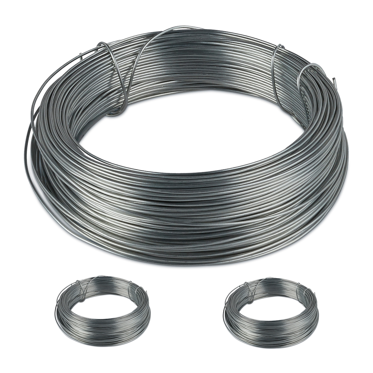 Relaxdays Bindedraht im 3er Set, rostfrei für Garten, verzinker Stahl, dünner Basteldraht, 50 m lang, D: 1 mm, silber