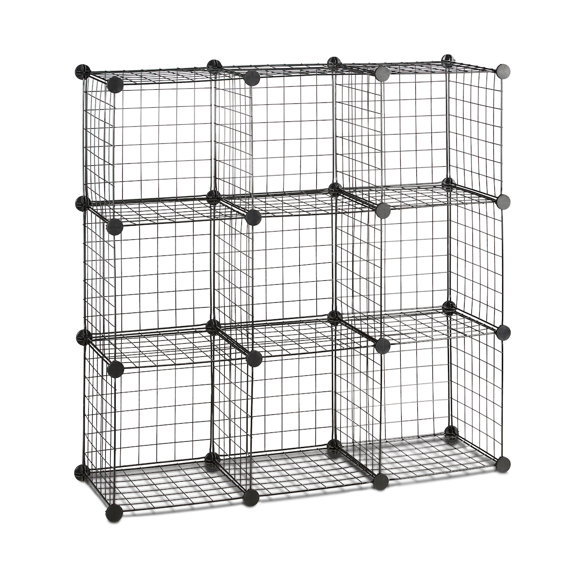 Relaxdays Steckregal Drahtgitter, 9 Fächer, DIY-Regalsystem Metall, offenes Würfelregal, Fächergröße 35 x 35 cm, schwarz