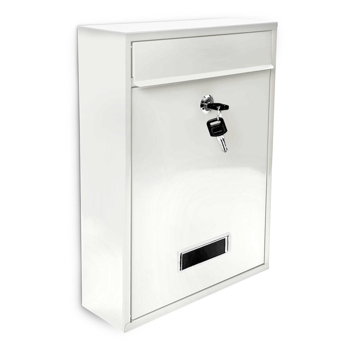 Relaxdays Design Briefkasten Metall Weiß 26,5 x 35 x 8,5 cm