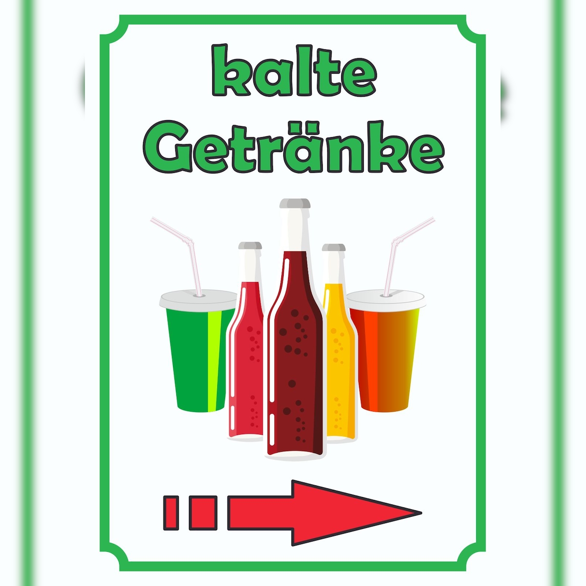 HB-Druck kalte Getränke Schild Hochkant mit Pfeil rechts A6 Rückseite selbstklebend