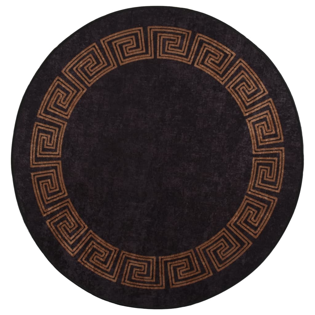 vidaXL Teppich Waschbar Schwarz und Golden Ø 120 cm Rutschfest