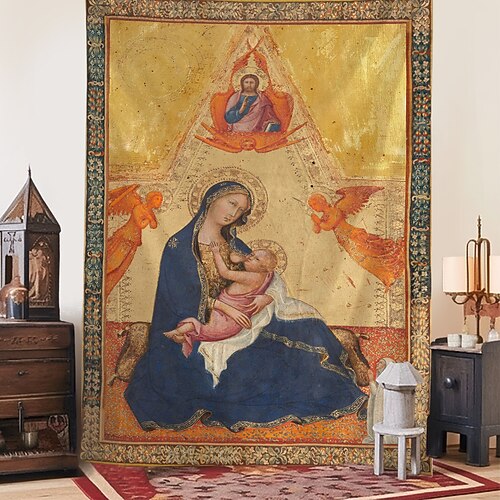 Mittelalterliche Wandteppich Mittelalter Wandteppich Byzantinische Kunst Großer Wandteppich Wandmalerei Dekor Fotografie Hintergrund Zuhause Schlafzimmer Wohnzimmer Madonna der Demut Der Segen