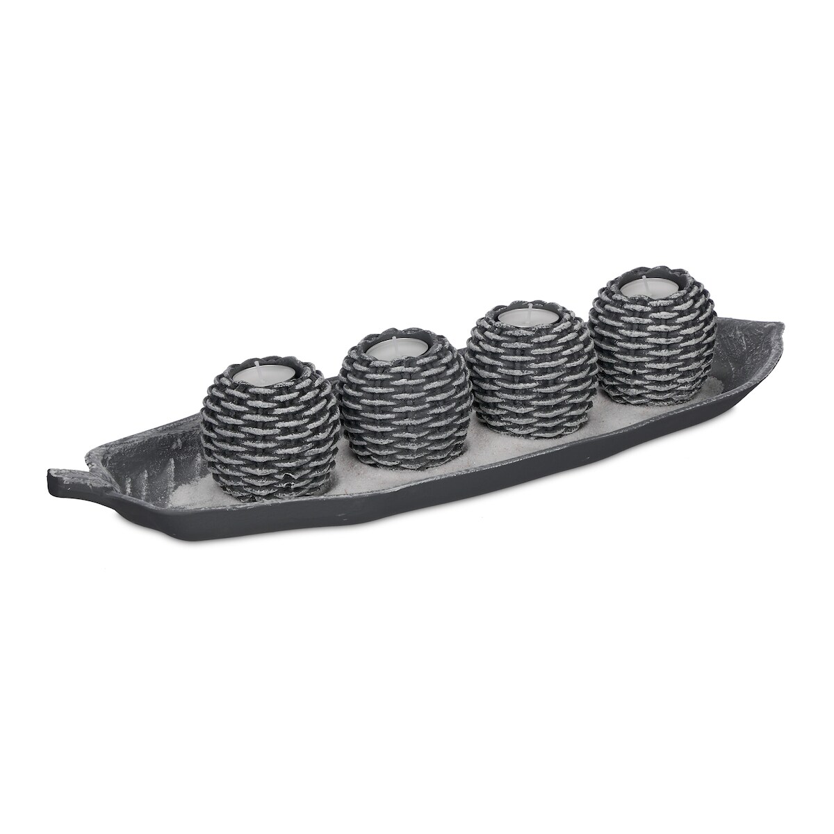 Relaxdays Kerzen Deko, Set mit Dekotablett, 4 Teelichthaltern & Sand, Tischdeko Wohnzimmer, Dekoteelichter, grau/weiß