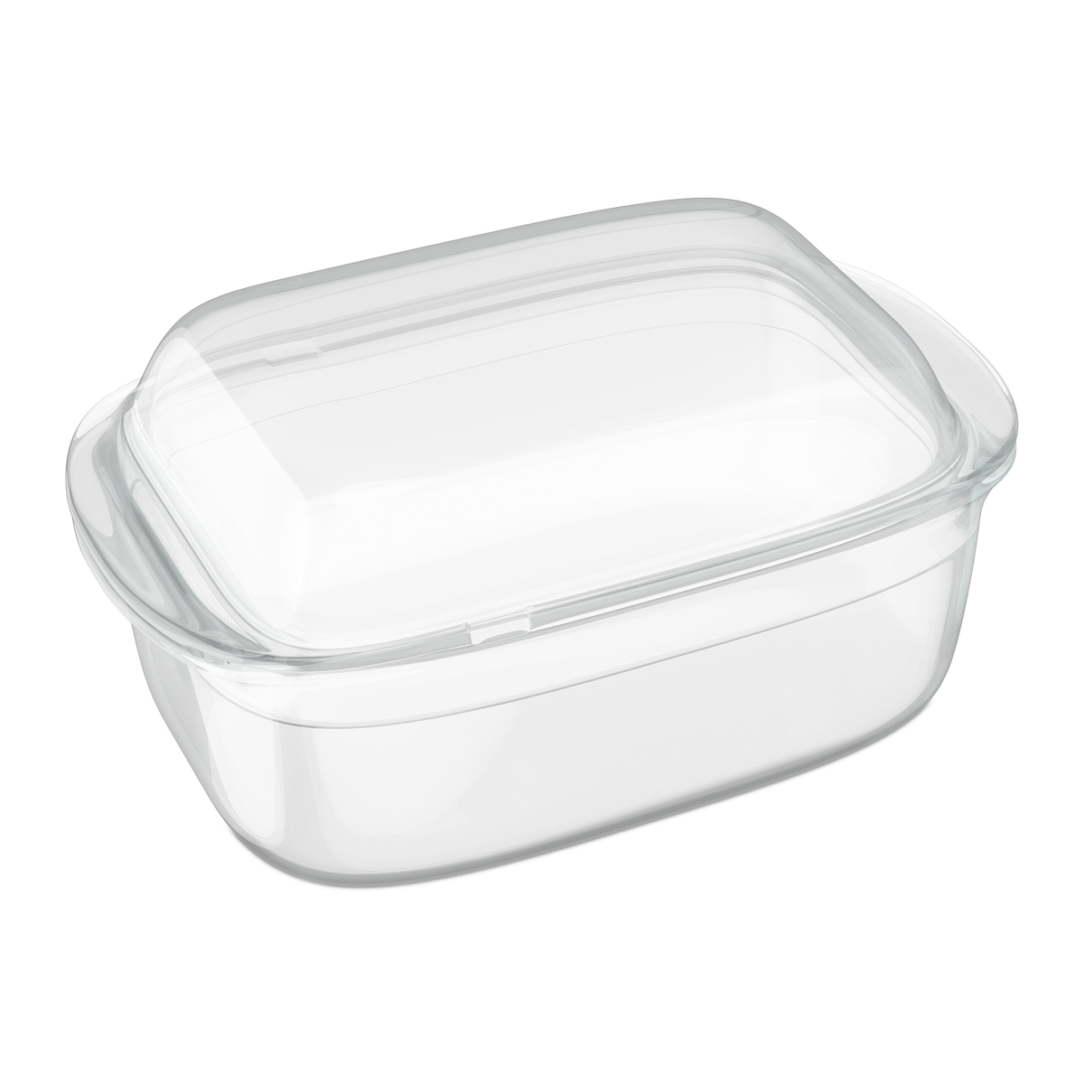Relaxdays Auflaufform mit Deckel, Bräter aus Glas, 4,5 L, Lasagne, Auflauf, Tiramisu, Gratinform Backofen, transparent