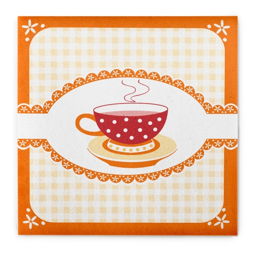 Sovie HORECA Serviette Kathrin in Orange aus Linclass® Airlaid 40 x 40 cm, 50 Stück - Karo Kaffee Tasse