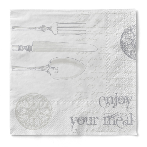 Sovie HORECA Serviette Elisabeth in Silber-Weiss aus Tissue 40 x 40 cm, 100 Stück - Guten Appetit